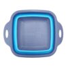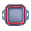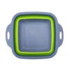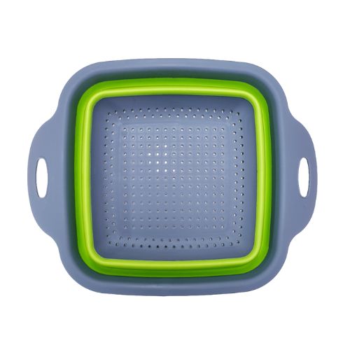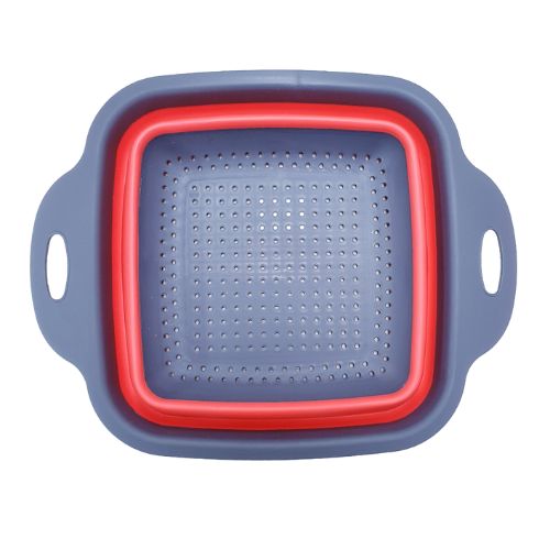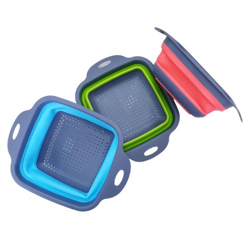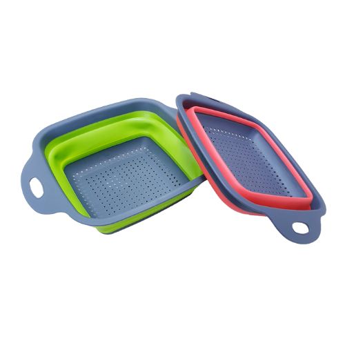Utensilio de cocina diseñado para colar un liquido o harinas; consiste en una pieza de silicona con agujeros y dos asas a sus lados para sujetarlo. Permite diferentes niveles de llenado y es ideal para el lavado de frutas y verduras.